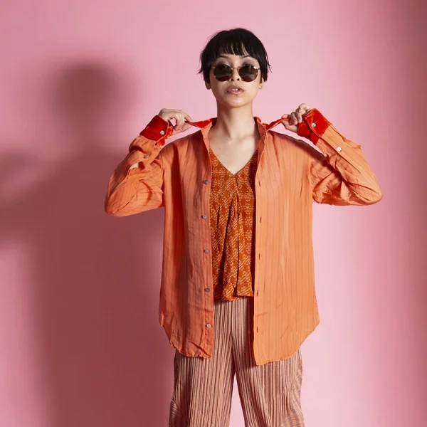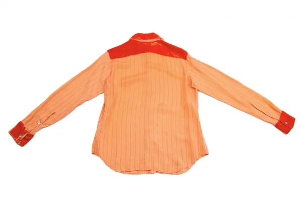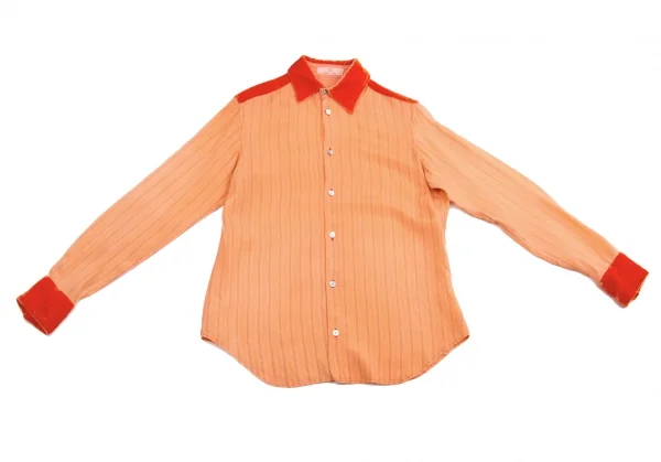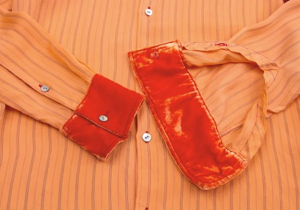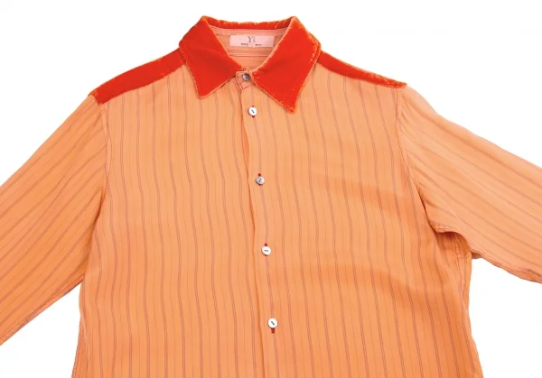 【SALE】ワイズY's シルク襟袖パイルストライプブラウス オレンジ黒3