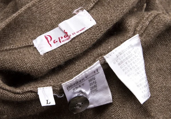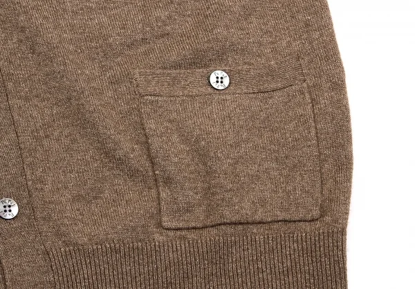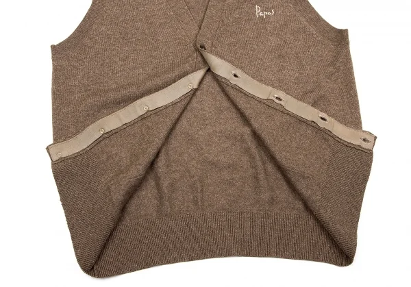 パパスPapas ワンポイント刺繍カシミヤ混カーディガンベスト 杢モカ茶L
