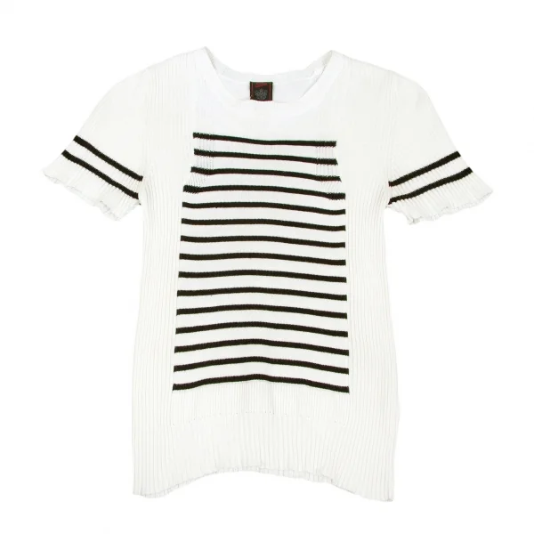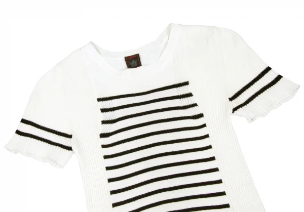 【SALE】ジャンポールゴルチエ クラシックJean Paul GAULTIER CLASSIQUE コットンボーダー切替半袖ニットトップス 白黒40