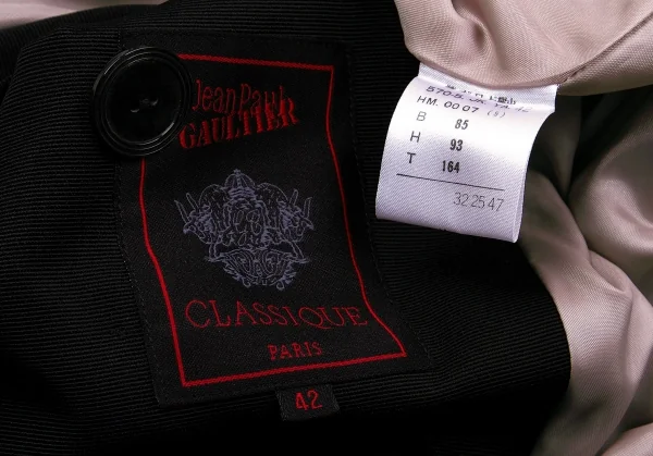 ジャンポールゴルチエ クラシックJean Paul GAULTIER CLASSIQUE アセテートポリ裾変形ダブルボタンジャケット 黒ピンクベージュ42