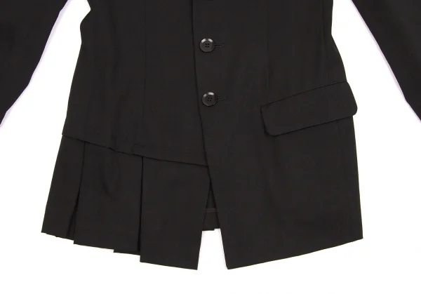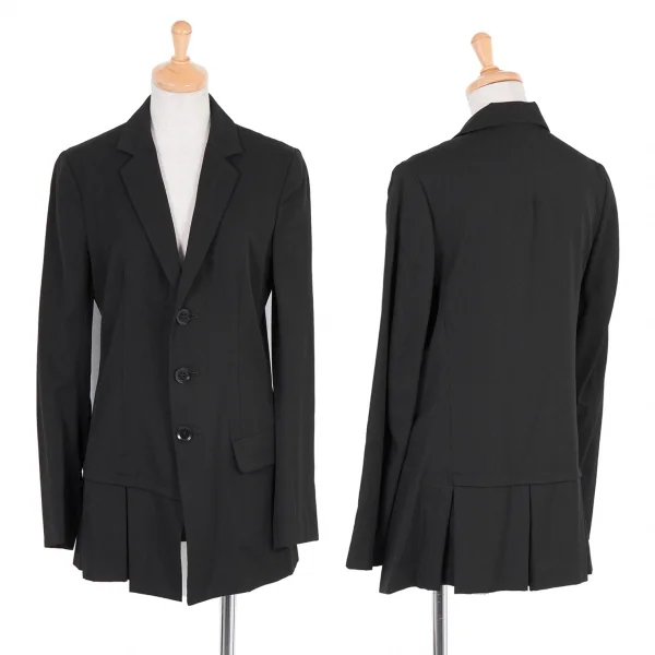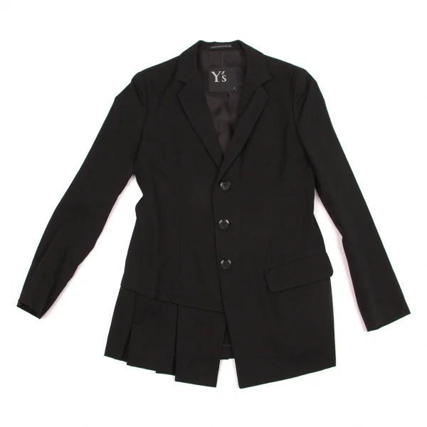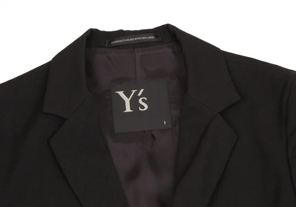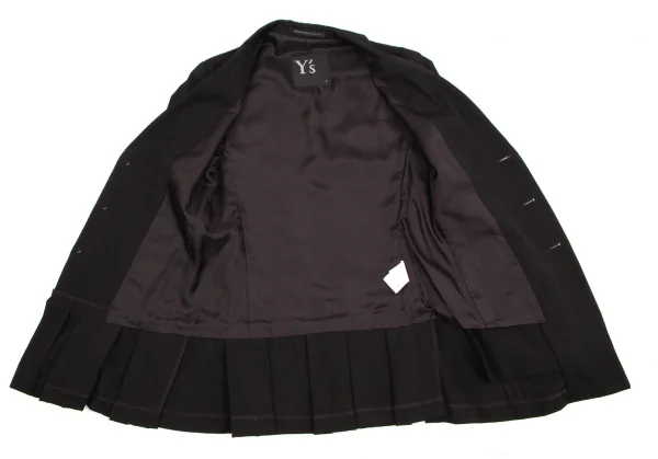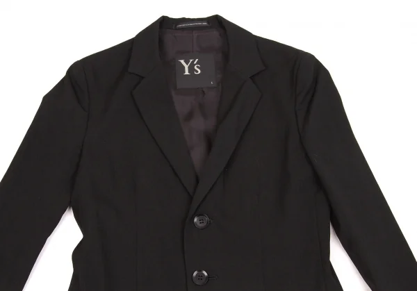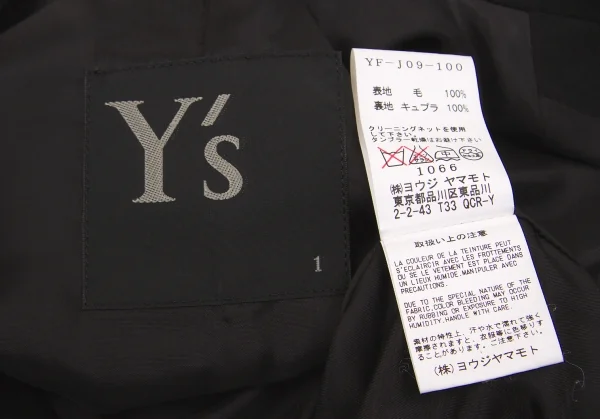 ワイズY's 裾プリーツウールギャバロングジャケット 黒1