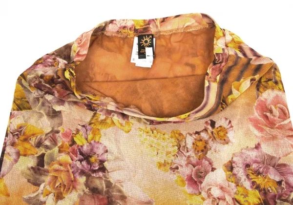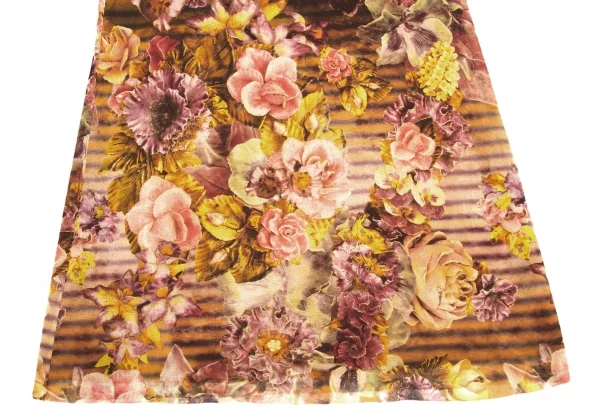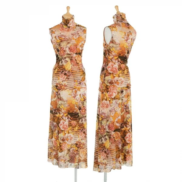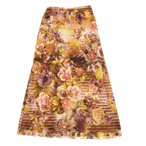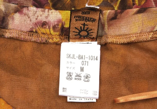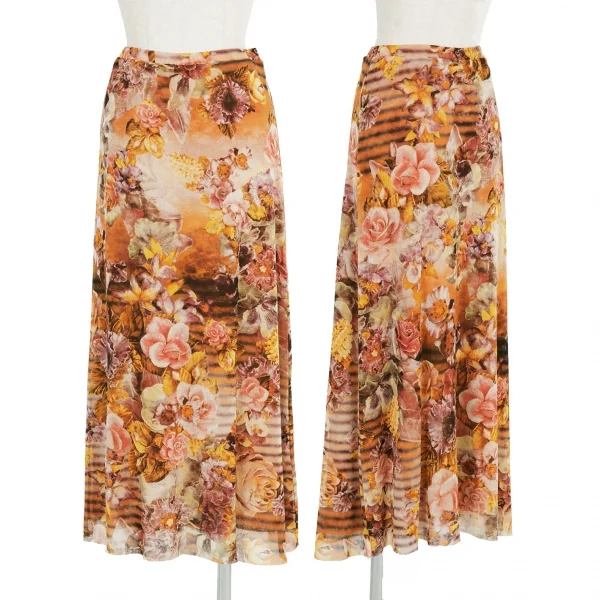 ジャンポールゴルチエ ソレイユJean Paul GAULTIER SOLEIL パワーネットレイヤード花柄プリントスカート オレンジマルチM