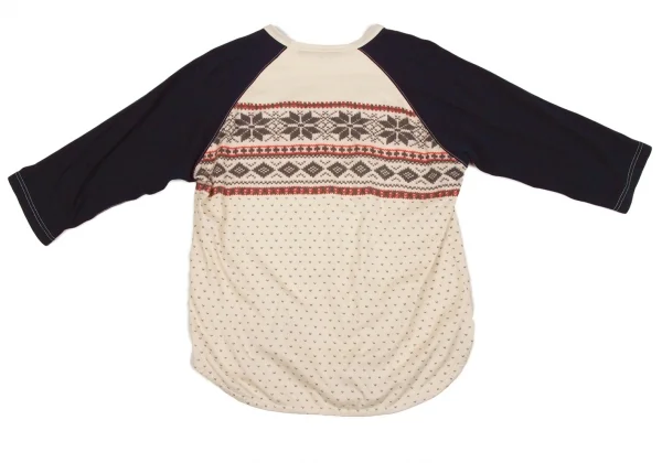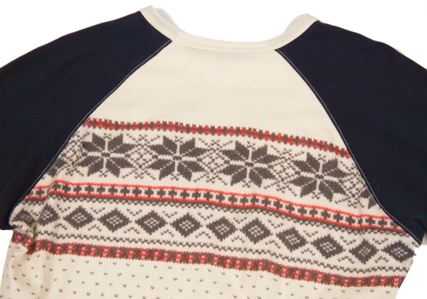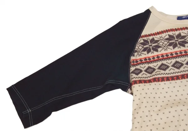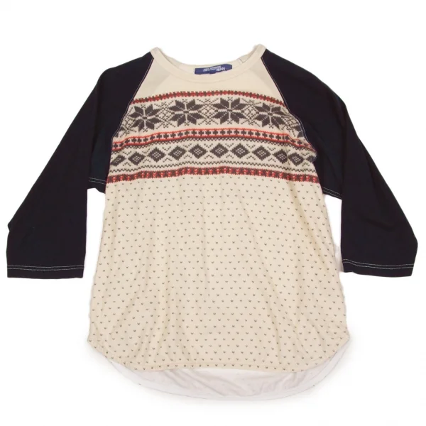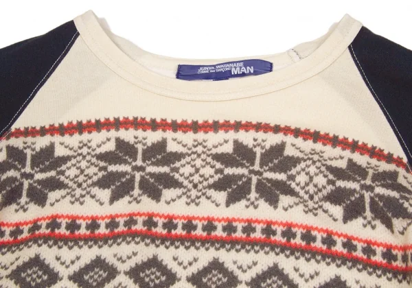 ジュンヤワタナベマン コムデギャルソンJUNYA WATANABE MAN COMME des GARCONSノルディックプリントラグランTシャツ 紺生成りマルチM