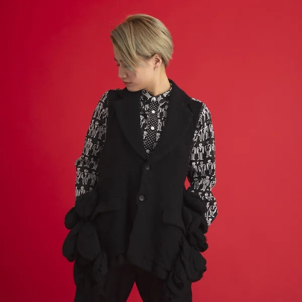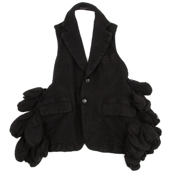 【SALE】コムデギャルソンCOMME des GARCONS ウール縮絨フリル装飾エプロンベスト 黒SS