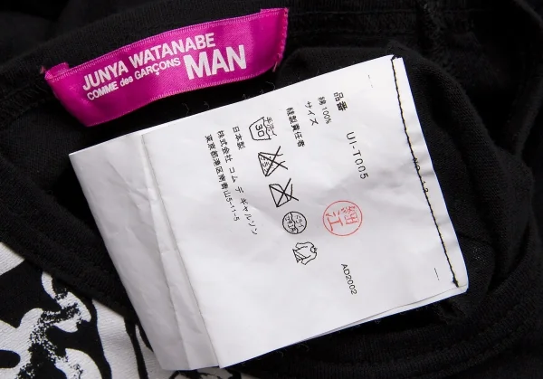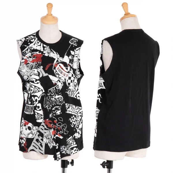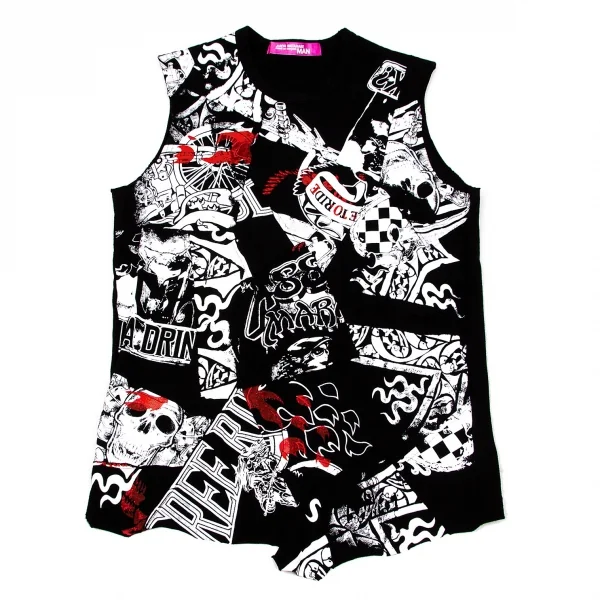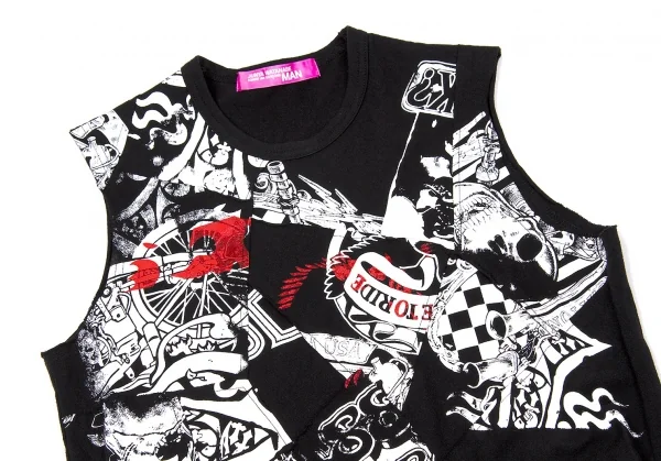 【SALE】ジュンヤワタナベマンピンク コムデギャルソンJUNYA WATANABE MAN PINK COMME des GARCONS コットン顔料プリントパッチワークノースリーブ 黒白赤M位