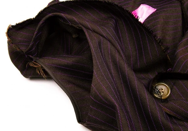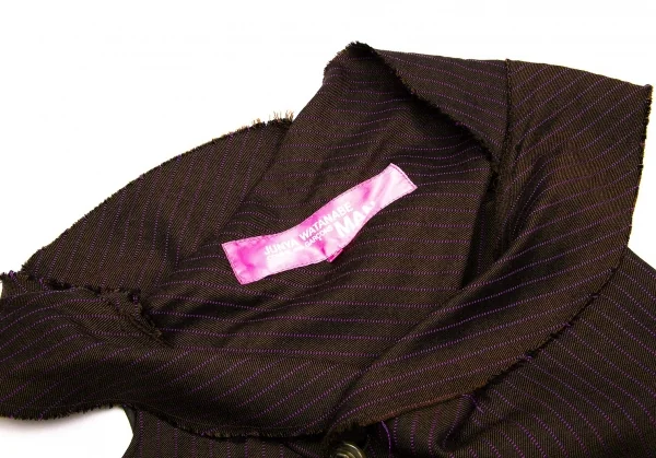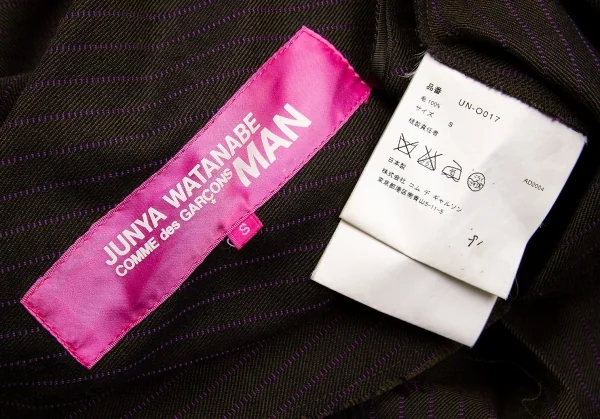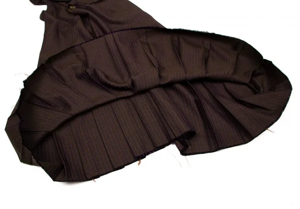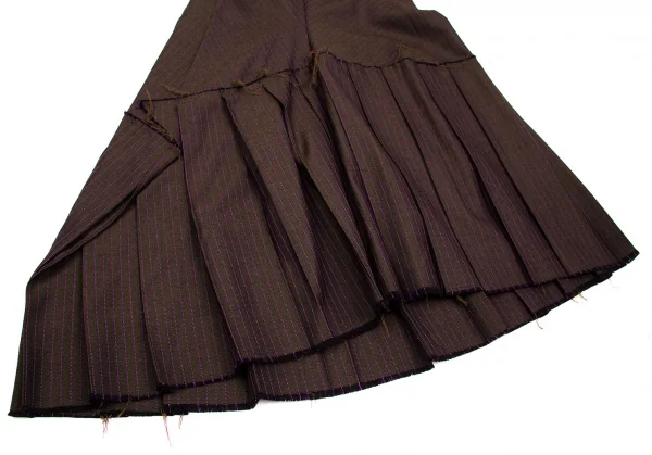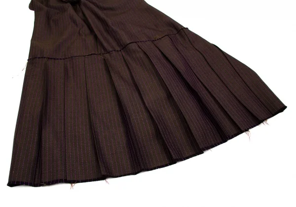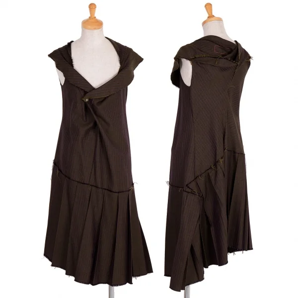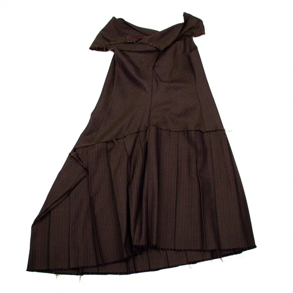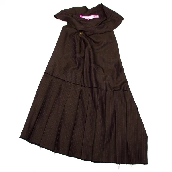 ジュンヤワタナベマンピンク コムデギャルソンJUNYA WATANABE MAN PINK COMME des GARCONS ウールストライプねじれデザイン切替プリーツワンピース 茶S