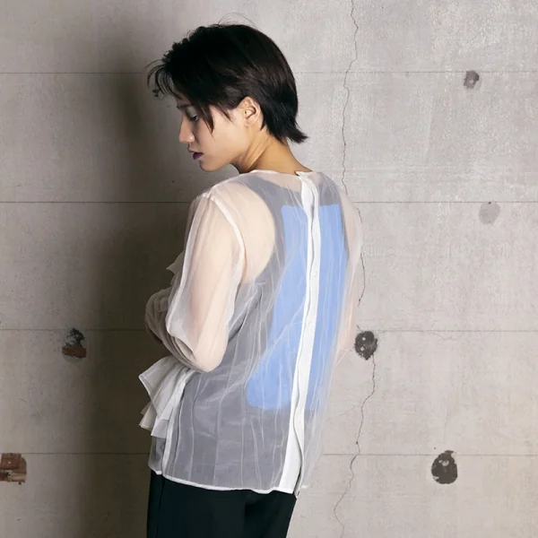 【SALE】ヨウジヤマモト ファムYohji Yamamoto FEMME カラーパネル切替タンクトップ チャコール青2