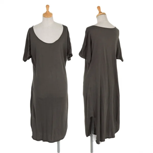 【SALE】ワイズY's コットンシルクドルマンスリーブワンピース カーキグレー2
