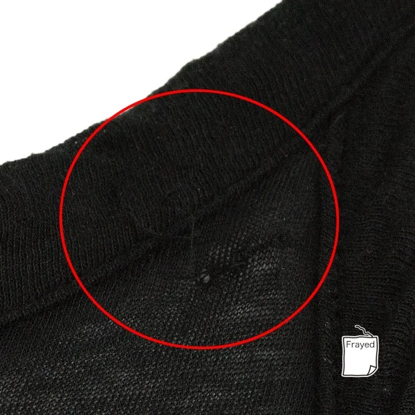 全体的に毛羽立ちあり、前身頃にシミ、後身頃に引っ掛けがあります(写真参照)クリーニング済み。