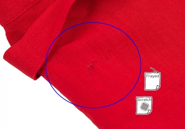 身頃にスレによるダメージ、シミ、裾に破れがあります(写真参照)クリーニング済み。