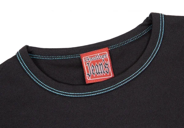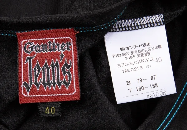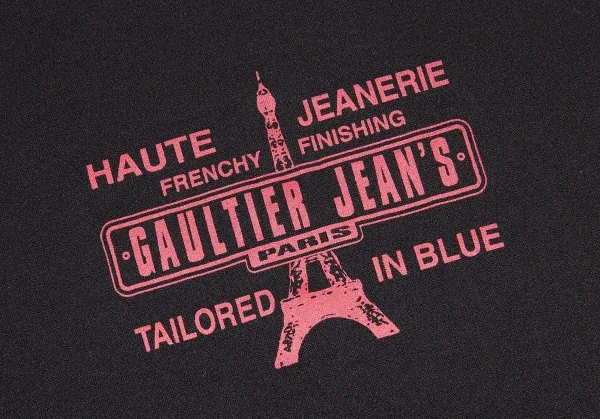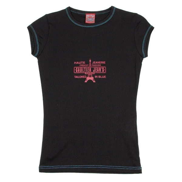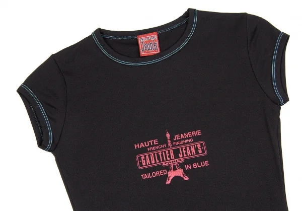 ゴルチエジーンズGAULTIER JEAN'S ナイロンストレッチフレンチスリーブプリントTシャツ 黒ブルー赤40