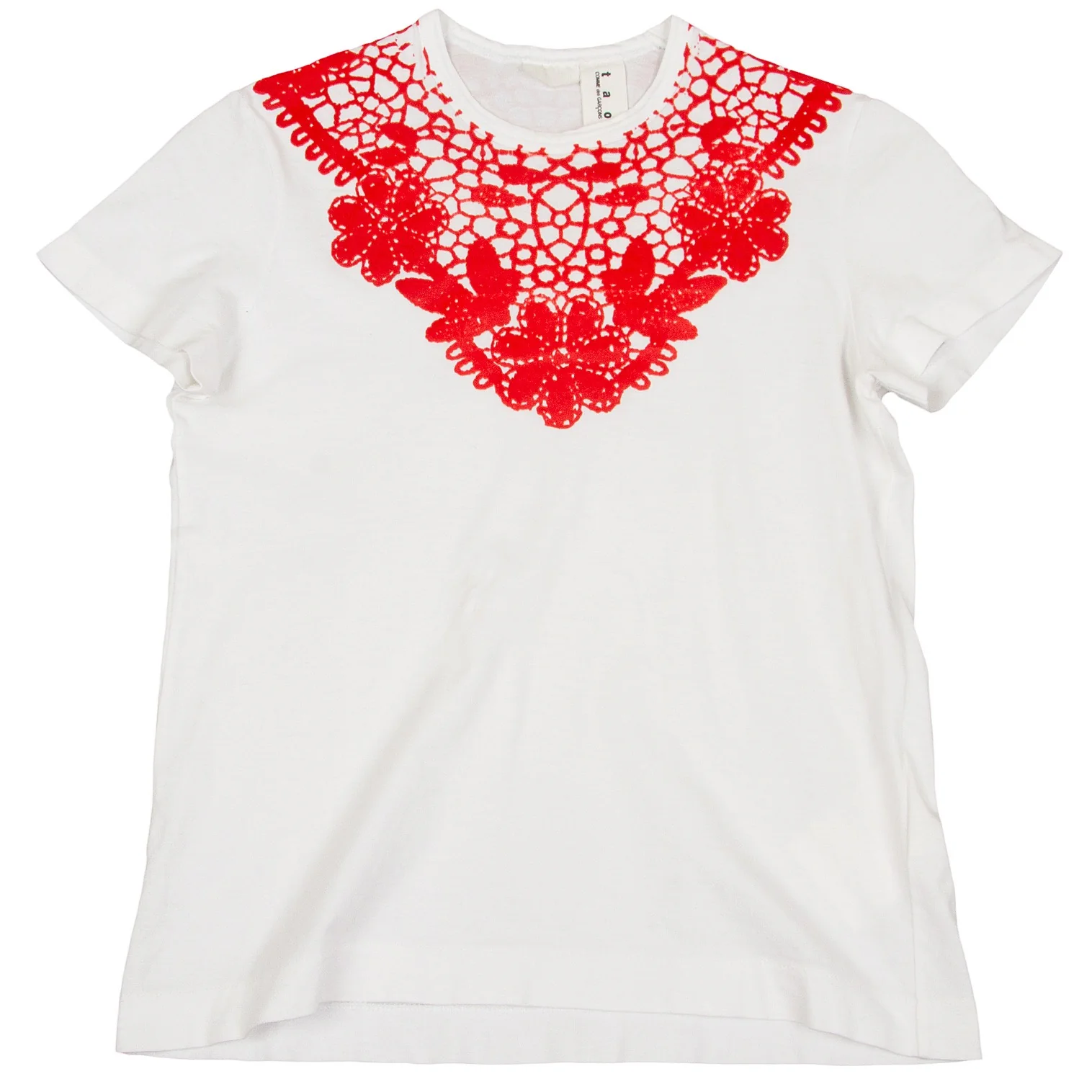 【SALE】タオ コムデギャルソンtao COMME des GARCONS 花柄切替Tシャツ 白赤M位