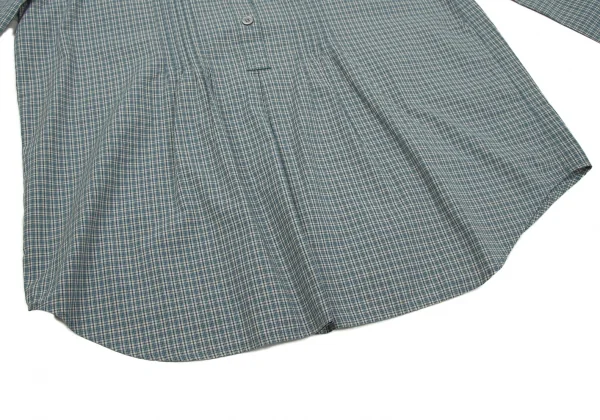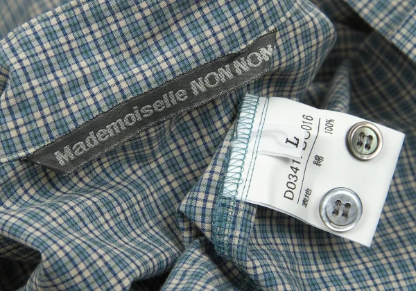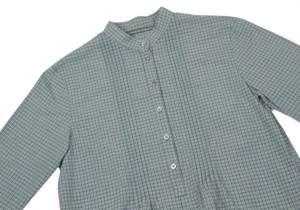マドモアゼルノンノンMademoiselle NON NON コットンチェックスタンドカラーフプルオーバーシャツ 濃淡青白L