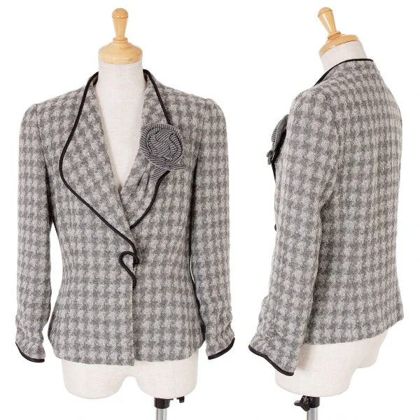 エンポリオアルマーニEMPORIO ARMANI コサージュ付きジャケット 濃淡グレー黒M位