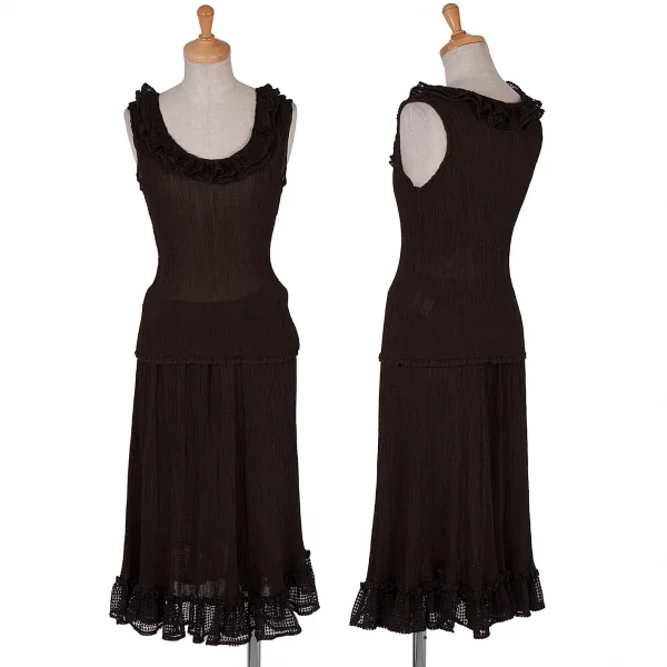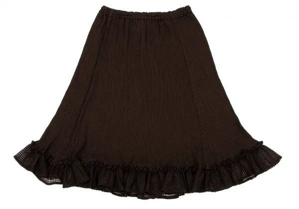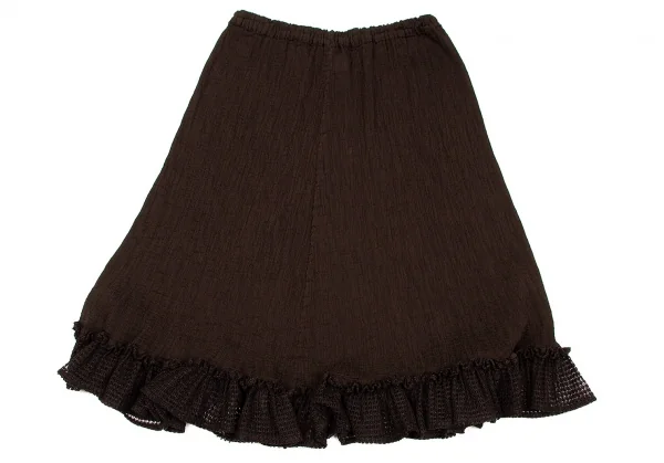 イッセイミヤケミーISSEY MIYAKE me 裾レースプリーツスカート こげ茶M位
