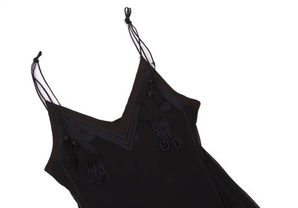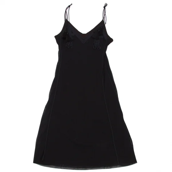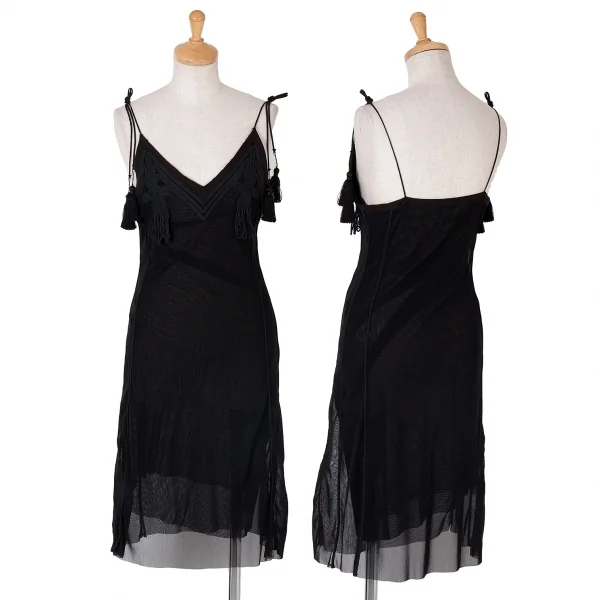 ジャンポールゴルチエ ファムJean Paul GAULTIER FEMME タッセルストラップパワーネットキャミワンピース 黒紺40