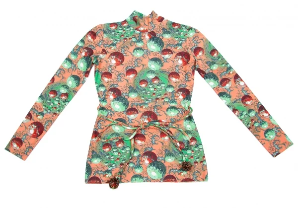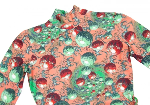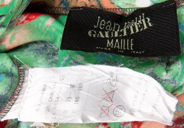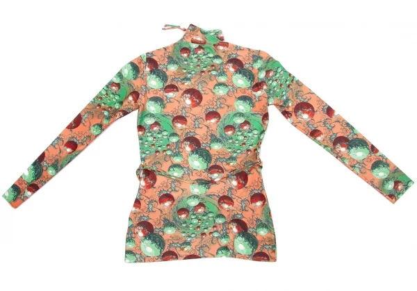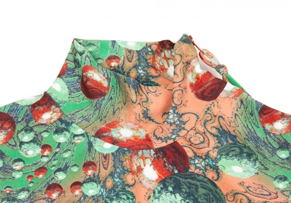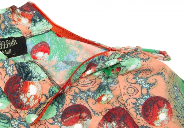 ジャンポールゴルチエマイユJean Paul GAULTIER MAILLE ショルダージップナイロンプリントカットソー レンガグリーンエンジ他40