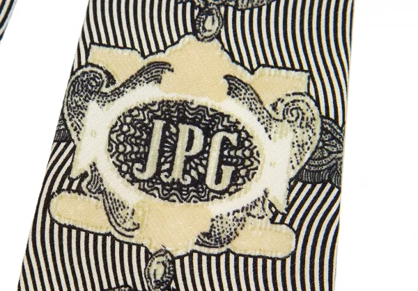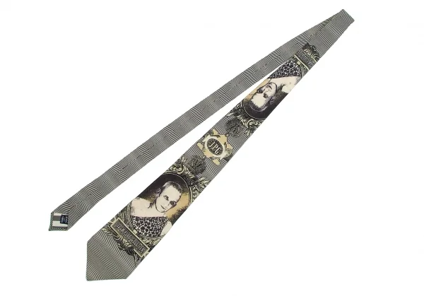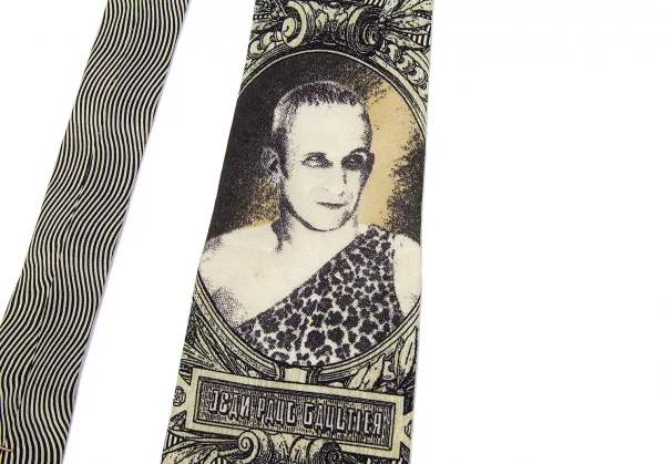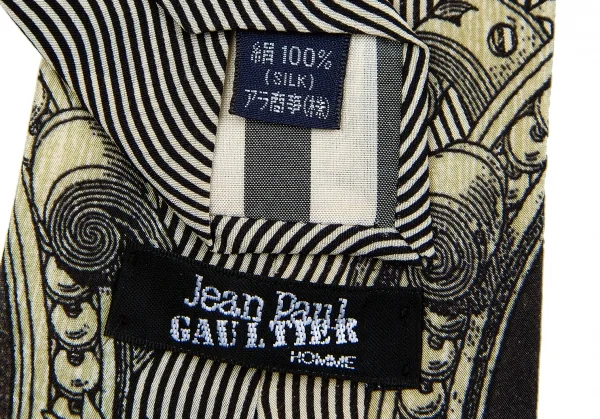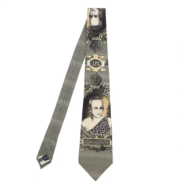 ジャンポールゴルチエ オムJean Paul GAULTIER HOMME デザイナーフェイスプリントシルクネクタイ ベージュ黒グレー
