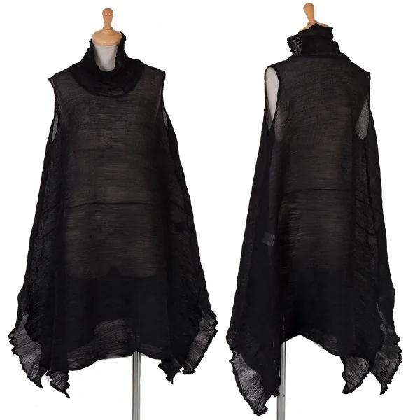 イッセイミヤケミーISSEY MIYAKE me ボトルネックノースリーブワンピース 黒M位