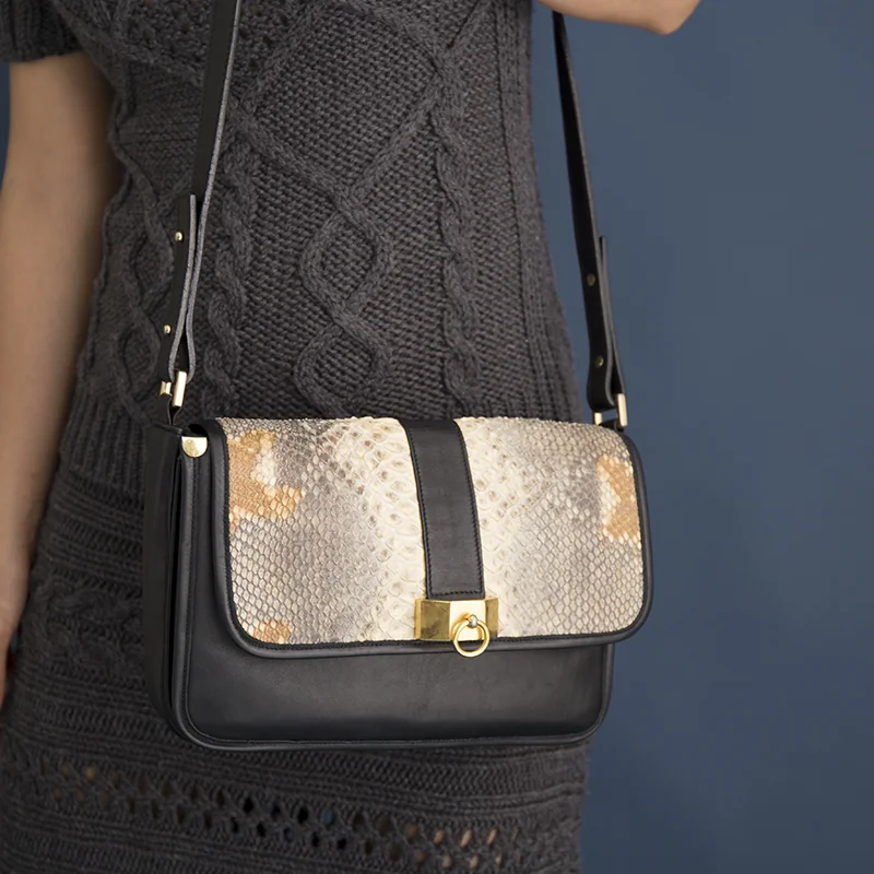 【SALE】フィリップ ルクーPHILIPPE ROUCOU レザーバッグ 黒ベージュ