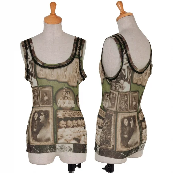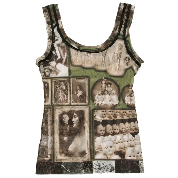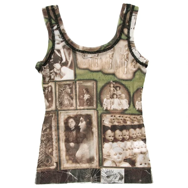 ジャンポールゴルチエ ファムJean Paul GAULTIER FEMME グラフィックプリントパワーネットタンクトップ 茶緑黒他40