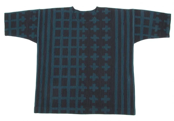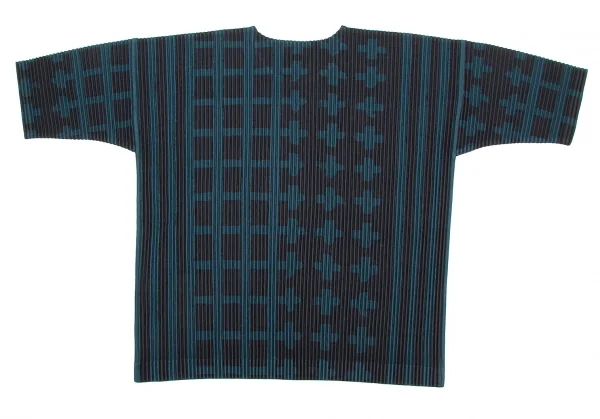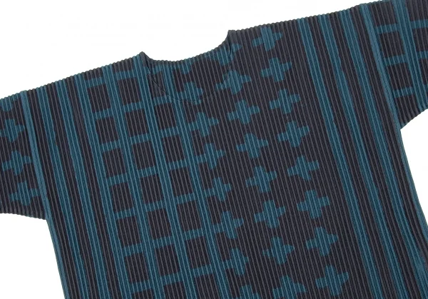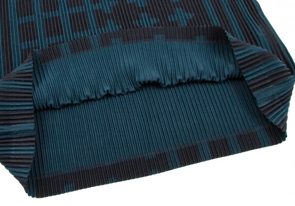 オムプリッセ イッセイ ミヤケHOMME PLISSE ISSEY MIYAKE 格子プリントプリーツカットソー 深緑黒2