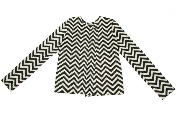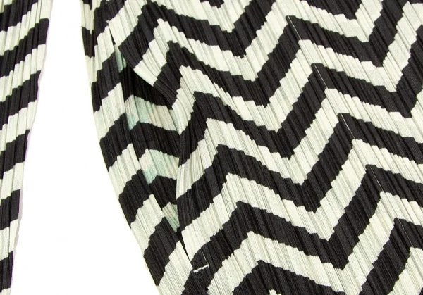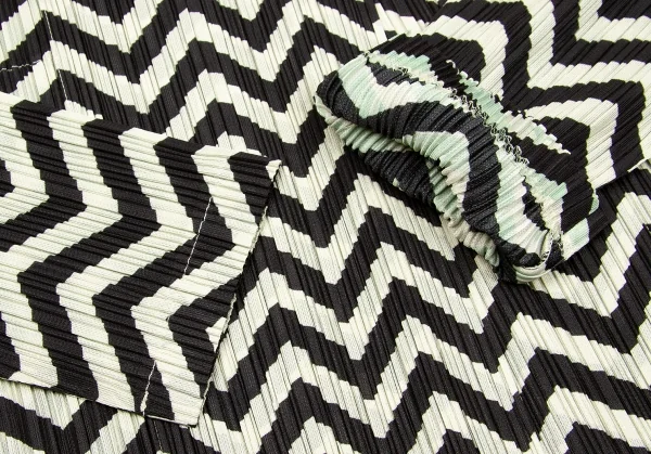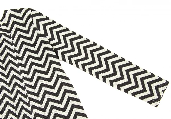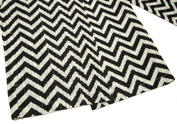プリーツプリーズPLEATS PLEASE ジグザグボーダープリーツボタンレスカーディガン 黒オフ3