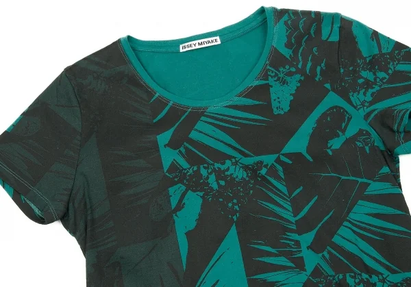 イッセイミヤケISSEY MIYAKE ボタニカルプリントTシャツ エメグリーン黒2