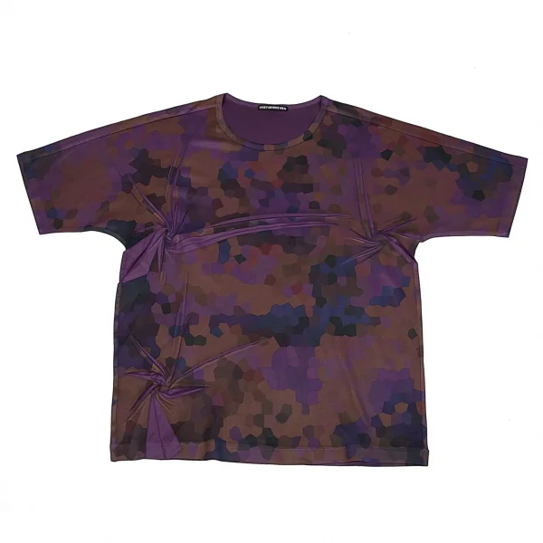 イッセイミヤケ メンISSEY MIYAKE MEN モザイク柄つまみプリーツTシャツ 紫マルチ4