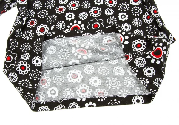 ブラック コムデギャルソンBLACK COMME des GARCONS 花柄プリントカットソー 黒白赤L
