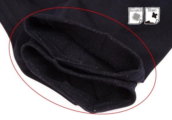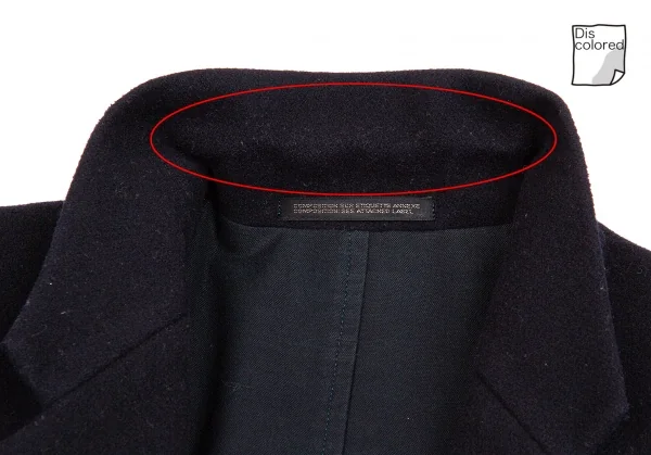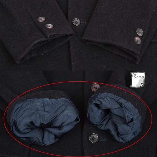 ジャケットの襟袖裏に色褪せ、パンツの左膝上にスレ、裾、裾裏にスレ、汚れがございます(写真参照)。その他、クリーニング済み