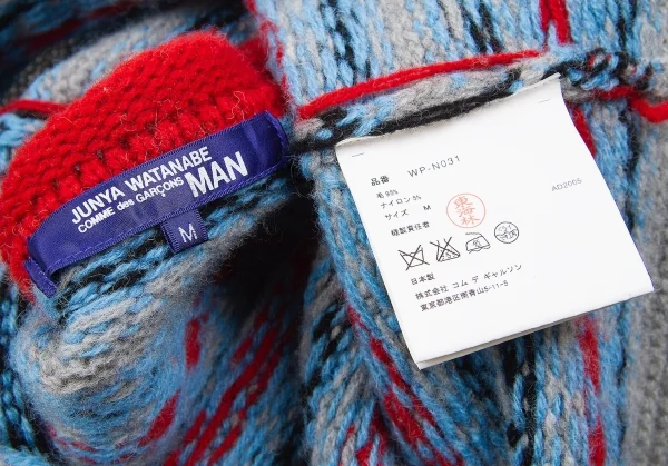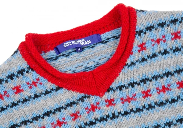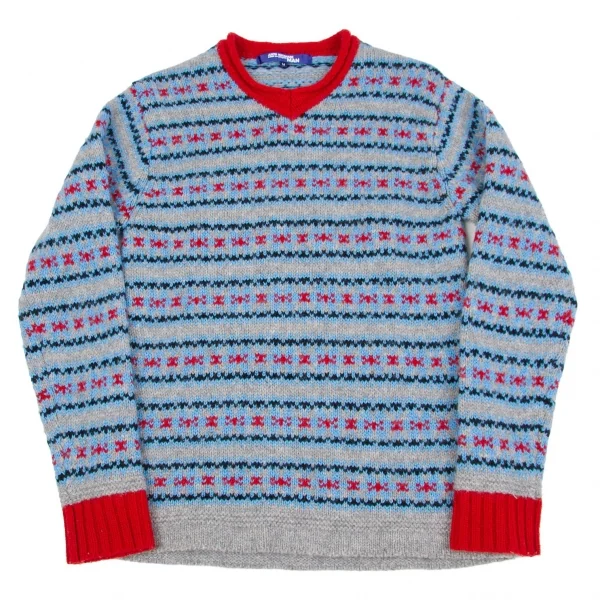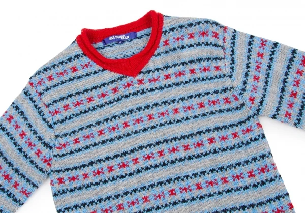ジュンヤワタナベマンコムデギャルソンJUNYA WATANABE MAN COMME des GARCONSボーダー編みニット 杢グレー赤ブルー他M