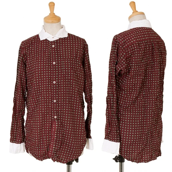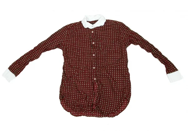 ジュンヤワタナベ コムデギャルソンJUNYA WATANABE COMME des GARCONS 小紋柄シワ加工クレリックシャツ エンジ黄白他S