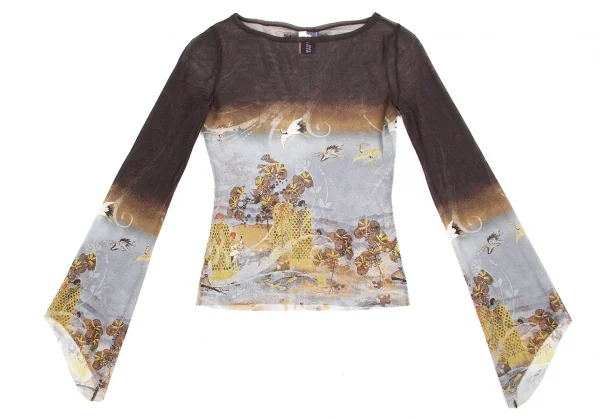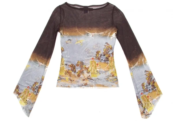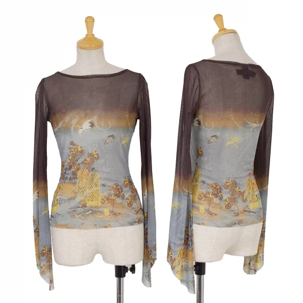 ジーンズポールゴルチエJean's Paul GAULTIER 鶴プリントパワーネットカットソー 茶ブルーマスタード他40