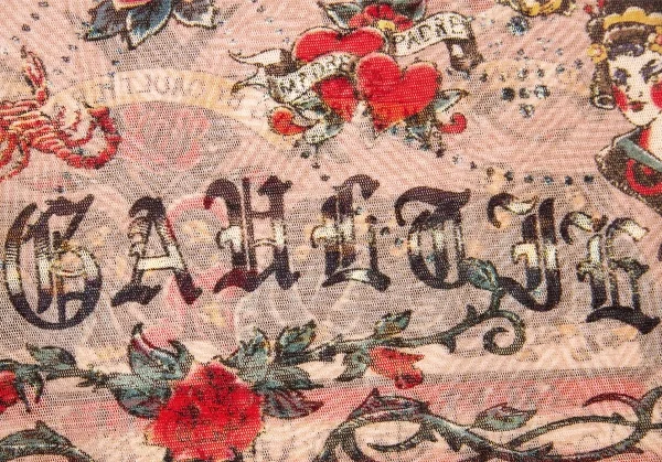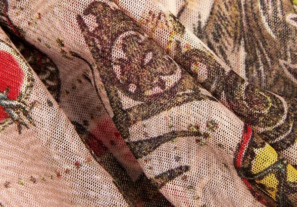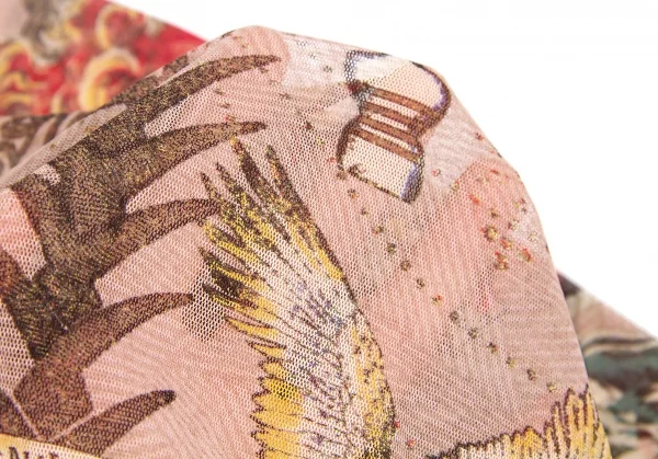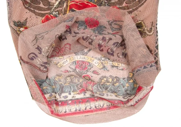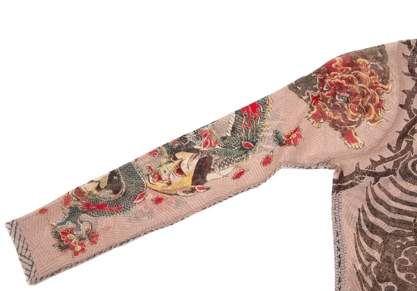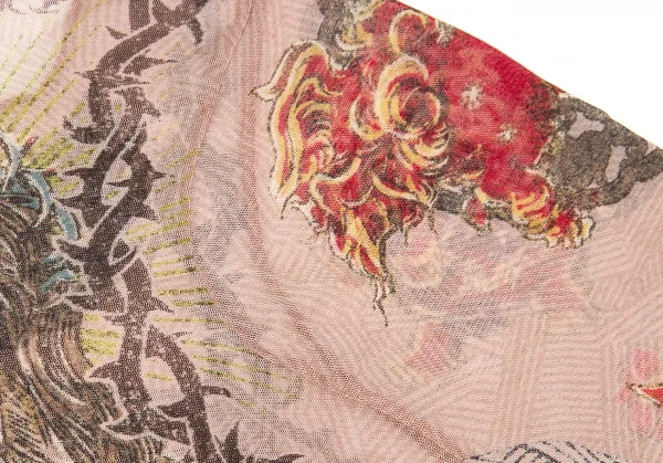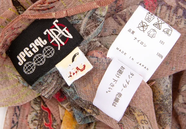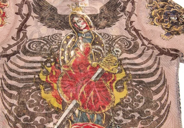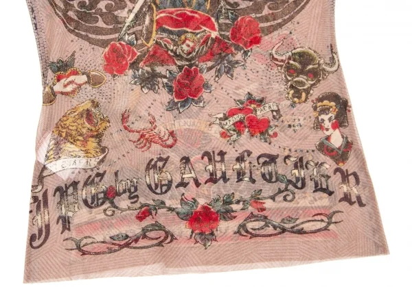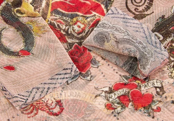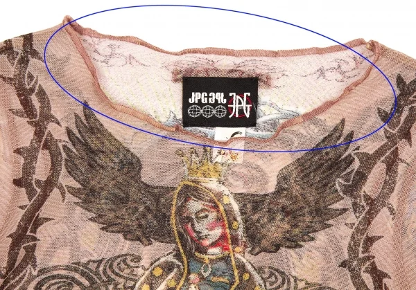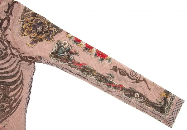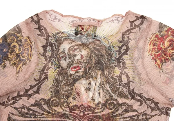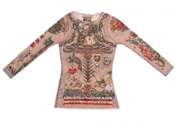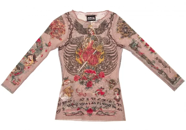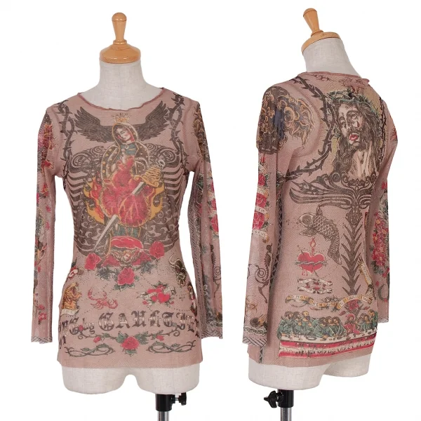 ジャンポールゴルチエJean Paul GAULTIER PARIS マリアタトゥープリントパワーネットカットソー ダークピンクエンジ茶他40