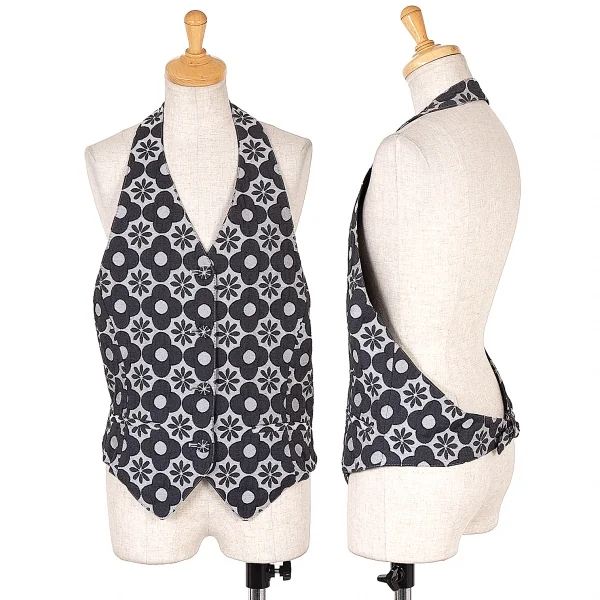 イッセイミヤケISSEY MIYAKE I.S. フラワージャガードベスト チャコール白M位