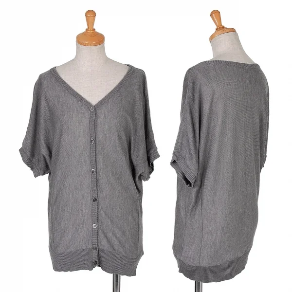 【SALE】イッセイミヤケ ミーISSEY MIYAKE me ドルマンスリーブ半袖カーディガン 杢グレーM位