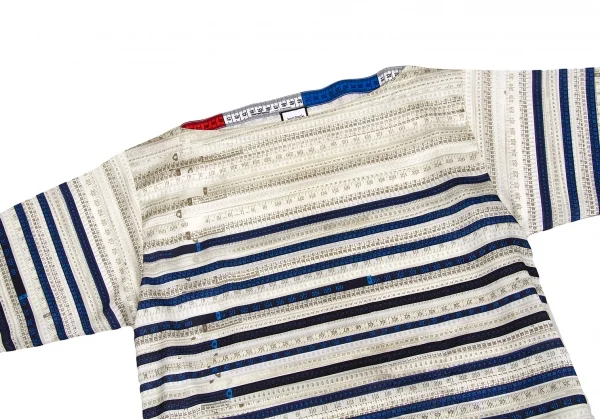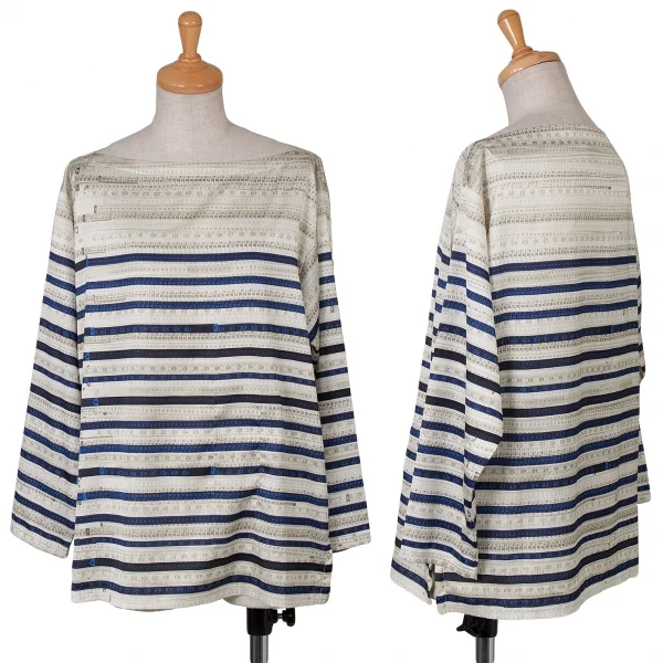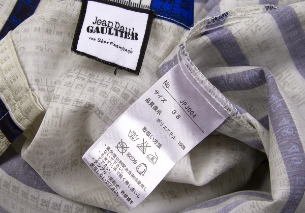 ジャンポールゴルチエ フォー セットプルミエJean Paul GAULTIER FOR SEPT PREMIERES メジャープリントポリエステルトップス ベージュ紺茶他38