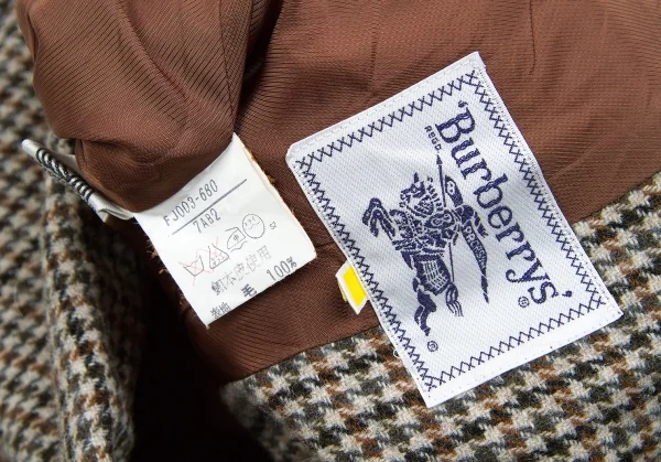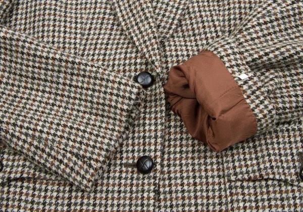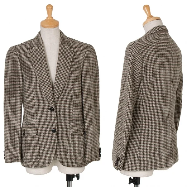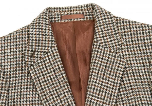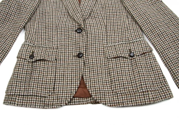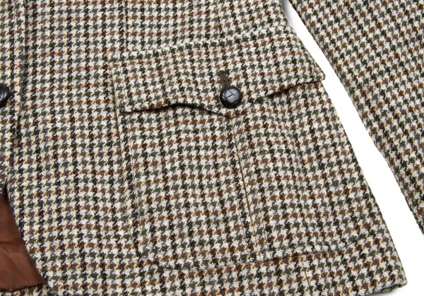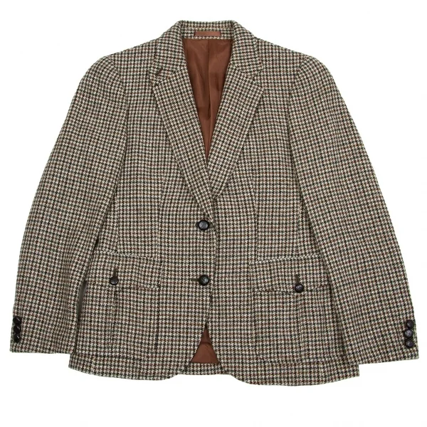 バーバリーBURBERRYS ハウンドトゥースツイードジャケット グリーンベージュ茶M位