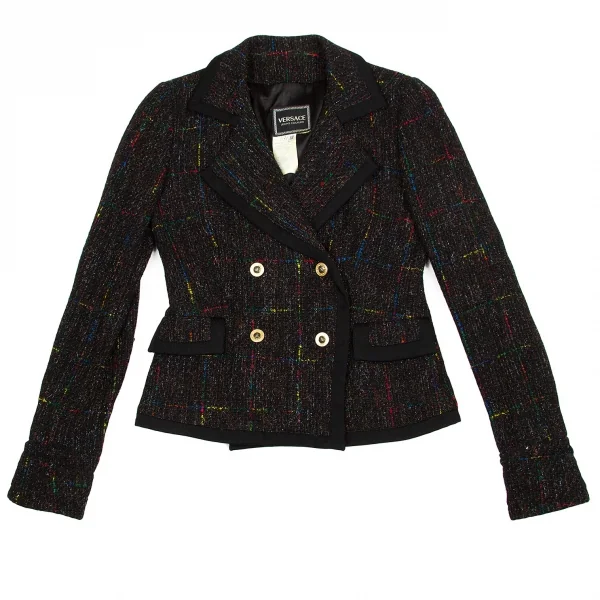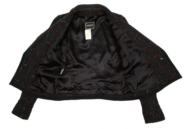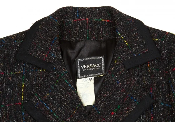 ヴェルサーチ ジーンズ クチュールVERSACE JEANS COUTURE ツイードトリミングジャケット 黒マルチ38