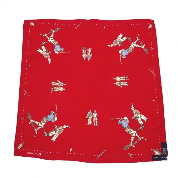 ラルフローレンRALPH LAUREN ゴルファー柄シルクスカーフ 赤他