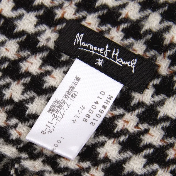 マーガレットハウエルMARGARET HOWELL ハウンドトゥースナローマフラー 黒オフ茶