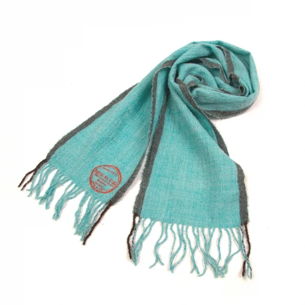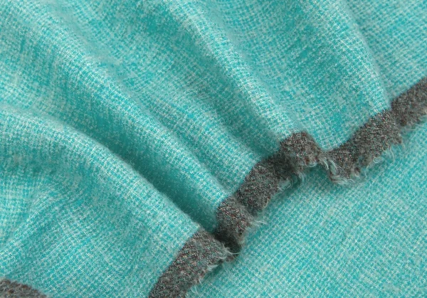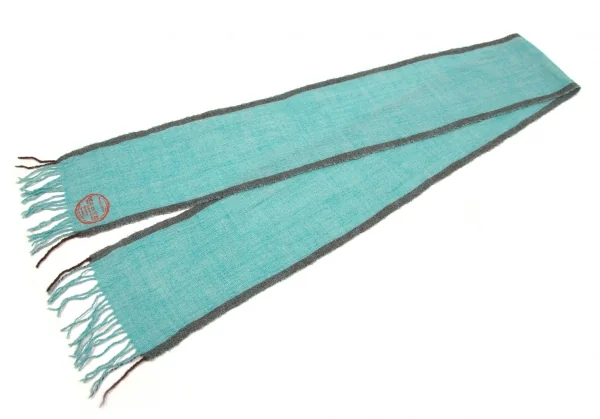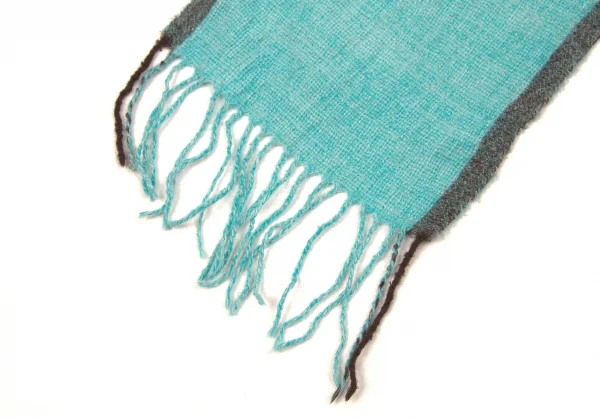45rpm ウールフリンジナローマフラー 水色チャコール