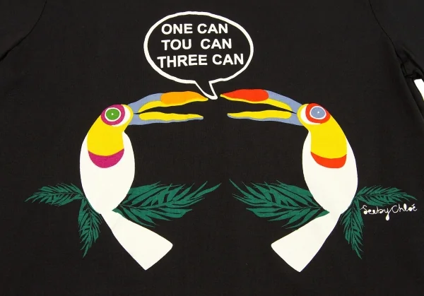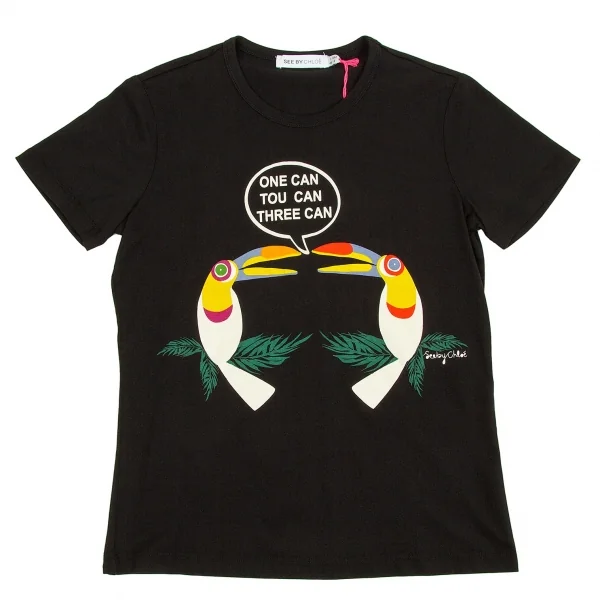 シーバイクロエSEE BY CHLOE オウムプリントTシャツ 黒マルチ40