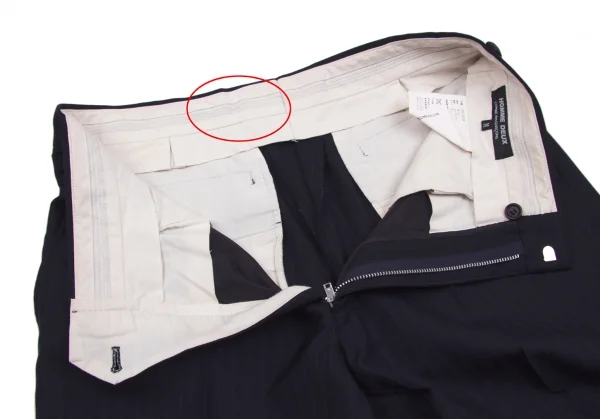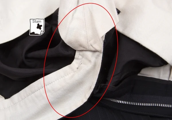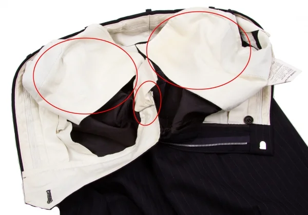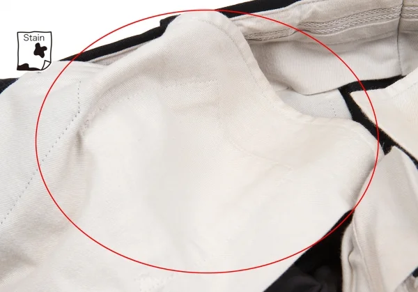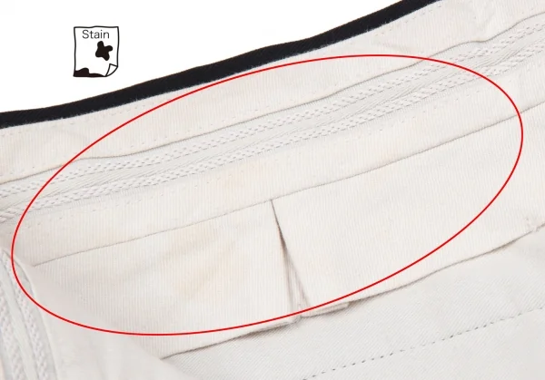 股、ポケット裏、ウエスト裏に汚れ、ヒップにテカリがございます(写真参照)。クリーニング済み