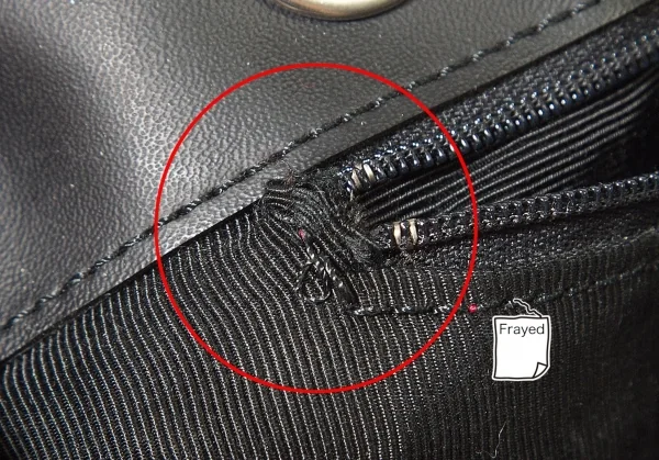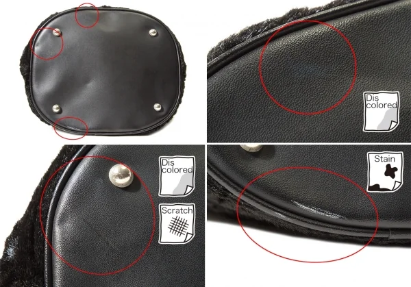 底にスレ・色あせ・汚れあり、内側ポケットの淵に生地の破れがあります(画像参照)。その他目立った傷や汚れなどありません。