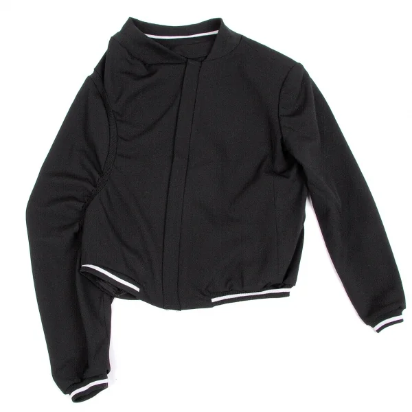 【SALE】ヨウジヤマモト ファムYohji Yamamoto FEMME ウールギャバアシンメトリーデザインジップアップブルゾン 黒白1