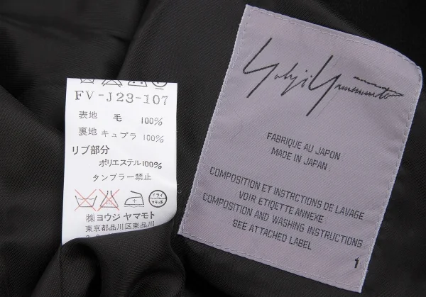 ウール100% 裏地キュプラ100% リブ部分ポリエステル100%