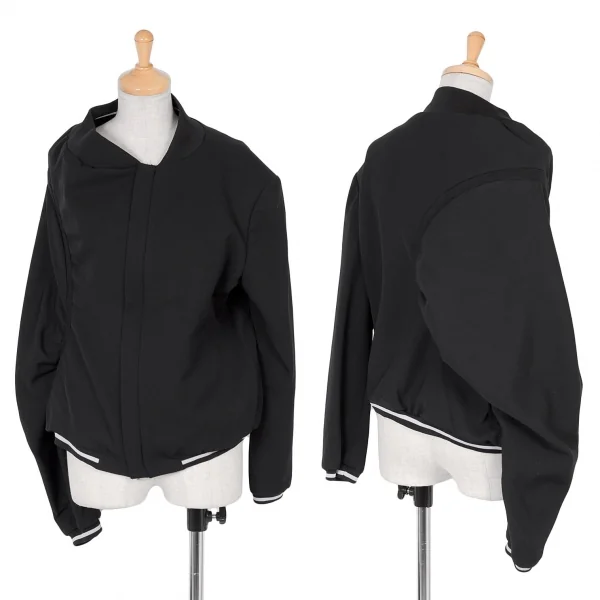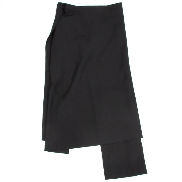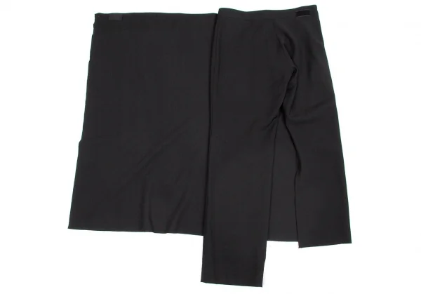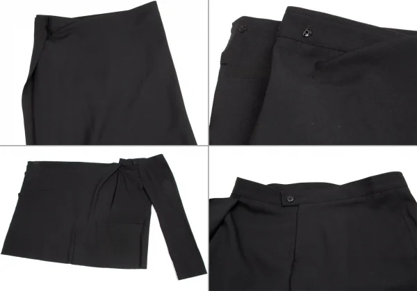 【SALE】ヨウジヤマモト ファムYohji Yamamoto FEMME ウールギャバアシンメトリーデザインセットアップ 黒白1