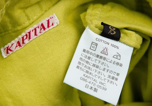 キャピタルKAPITAL コットンフィッシュテールシャツ 黄緑S